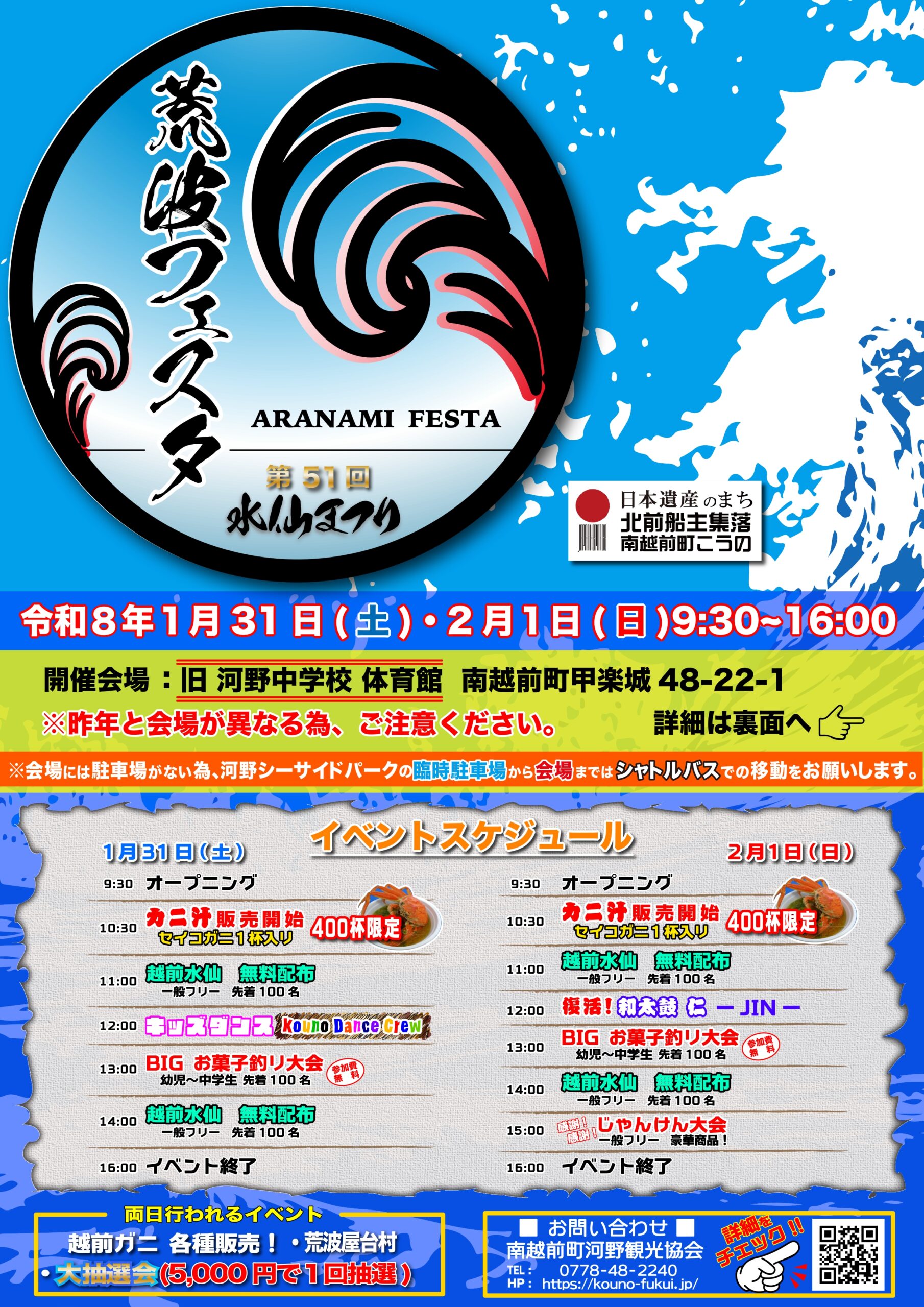 令和8年1月31日(土)と2月1日(日)の二日間、「荒波フェスタ」が開催されます。