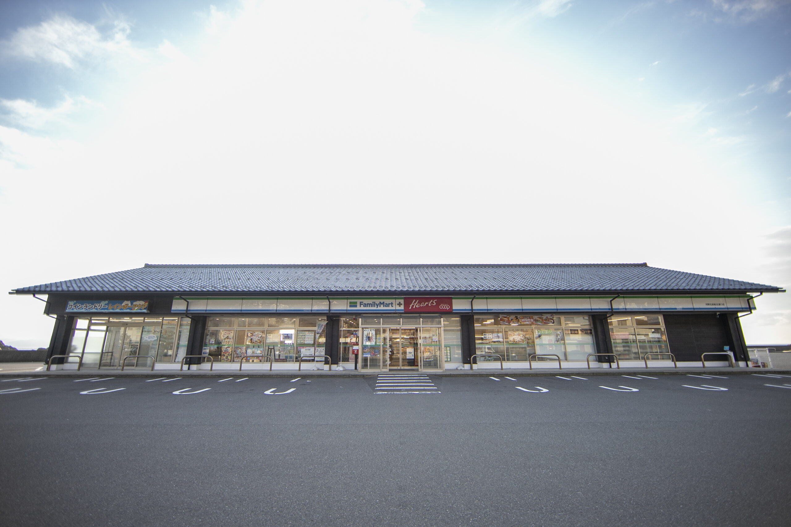 県民生協、ファミリーマート、南越前町、商工会、河野観光協会の5者で締結した、「地域活性化包括連携協定」に基づく福井県では初めての県民生協が展開する「ハーツ」とファミリーマートとの一体型店舗で、キッズルームや観光案内フリースペース、イートインコーナーなどコミュニティスペースが充実しており、ファミリーマートの標準の商品やサービスの提供はもちろんのこと、地元の青果・精肉・鮮魚などの生鮮食品などを取り揃えています。